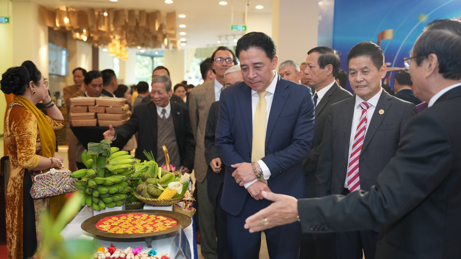 Lãnh đạo TP Huế, Tập đoàn Vietravel và các đại biểu tham quan các gian hàng về văn hóa, dịch vụ, ẩm thực tại Hué Plaza.